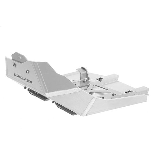 Die Entwickler von Honda haben mit der neuen Africa Twin ein Motorrad geschaffen, das zu Ausflügen ins Gelänge geradezu einlädt. Einige der positiven Offroad-Eigenschaften konnten durch unsere Touratech-Entwickler noch weiter verbessert werden. Dieser Motorschutz ist eine absolute Revolution! Touratech hat sehr großen Wert auf Stabilität und Funktionalität gelegt. Größere Schäden wie Löcher im Motorblock können durch den großen Touratech Motorschutz wirkungsvoll vermieden werden. Für höchste Stabilität sorgen zum einen die mehrfach gekanteten Vertiefungen in der 4 mm starken Aluminium-Grundplatte, zum anderen wird die Kraft eines Aufpralls dank einer zusätzlichen unteren Edelstahl-Befestigun platte am Motor großflächig auf 6 Anschraubpunkte verteilt. Die Unterbodenfreiheit wird dabei durch diese beiden Grundplatten nicht eingeschränkt. Zusätzlich sorgen Kunststoffschienen am unteren Teil der Grundplatte dafür, dass die ohnehin schon vertieft angebrachten Schraubenköpfe vollständig abgedeckt werden. Der Motorschutz lässt sich damit auch nach einem schweren Geländeeinsatz noch problemlos demontieren. Nicht zuletzt erleichtern die Kunststoffschienen das ”überrutschen” von Steinen, Felsen oder Baumstümpfen. Fast schon nebenbei sorgen sie auch dafür, dass sich kein Schmutz festsetzen kann. Alles in Allem ist der große Touratech Motorschutz für die Honda CRF1000L: Ein Produkt, das höchsten technischen Ansprüchen gerecht wird und optisch ein absolutes ”Highlight” ist!