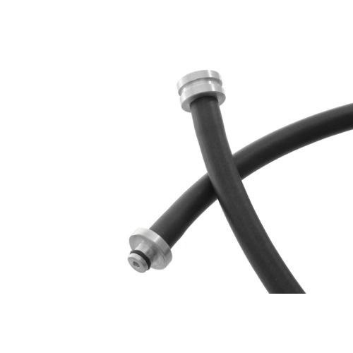 Mittels zweier robuster, aus Aluminium gedrehter Anschlussstücke und einem widerstandsfähigem Schlauch, wird das Ventil ohne großen Aufwand an eine sichere Stelle am Fahrzeug verlegt.